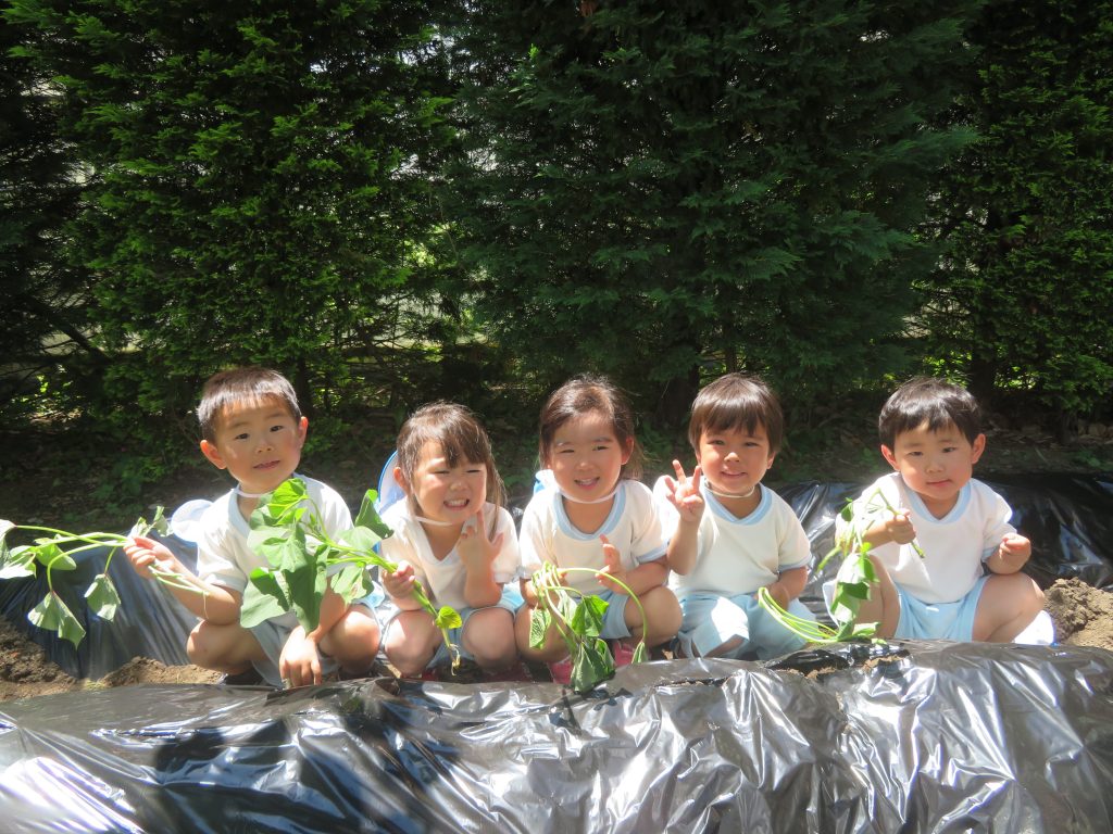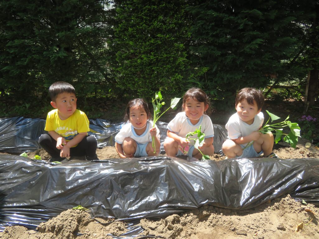 ゆき組さんほし組さんでさつまいもの苗を植えました。大きくなるといいな。