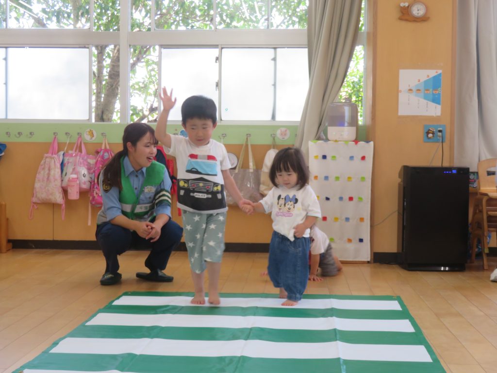 7月18日、館山警察署の方がきて横断歩道の渡り方を指導して頂きました。